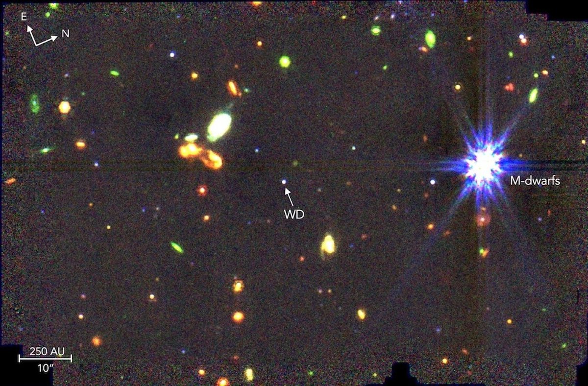 El telescopio espacial James Webb ha detectado un exoplaneta gélido de 5,2 masas la de Júpiter, orbitando una antigua enana blanca a una distancia de tan solo 0,02 ua (20% de la distancia Sol-Tierra).