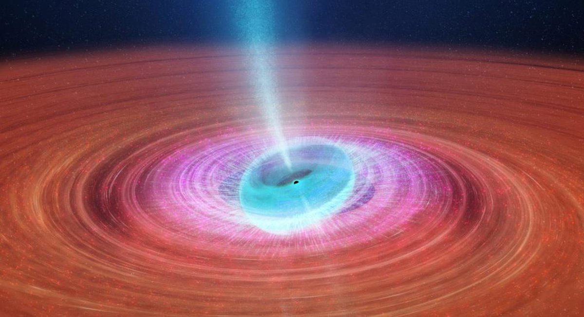 El gas se arremolina alrededor de un agujero negro debido a su intensa gravedad, formando un disco de acreción. Estos discos de acreción, que se encuentran entre los mecanismos de conversión de energía más eficientes del universo, emiten chorros de luz y plasma. Cuando un agujero negro gira sobre su eje, el disco de acreción se tambalea como una peonza.