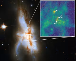 Ubicación de los tres agujeros negros supermasivos en NGC 6240 - P WEILBACHER (AIP), NASA, ESA,
