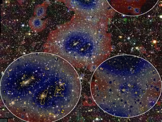 Casi, pero no del todo: en algunas partes la nube era un poco más densa que en otras. Y solo por esta razón hay planetas, estrellas y galaxias hoy. Esto se debe a que las áreas más densas ejercieron fuerzas gravitacionales ligeramente más altas, lo que atrajo el gas de su entorno hacia ellas. Por tanto, cada vez más materia se concentra en estas regiones a lo largo del tiempo. El espacio entre ellos, sin embargo, se volvió cada vez más vacío. En el transcurso de unos buenos 13 mil millones de años, se desarrolló una especie de estructura de esponja: grandes "agujeros" sin materia, con áreas intermedias donde miles de galaxias se agrupan en un espacio pequeño, los llamados cúmulos de galaxias.