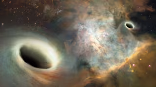 Los agujeros negros supermasivos, con millones o miles de millones de veces la masa del Sol, residen en los núcleos de la mayoría de las galaxias. La presencia de dos monstruos en el centro de una sola galaxia significa que la galaxia se fusionó con otra en algún momento del pasado. En tales casos, los dos agujeros negros mismos pueden eventualmente fusionarse en un evento que produciría ondas gravitacionales que ondulan a través del universo.