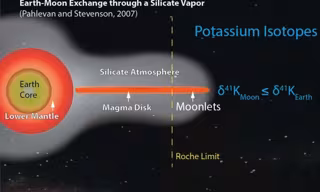 El único proceso de alta temperatura que podría separar los isótopos de potasio de esta manera, dijo Wang, es la condensación incompleta del potasio respecto del vapor durante la formación de la Luna. En comparación con el isótopo más ligero, el isótopo más pesado decaería preferentemente fuera del vapor y se condensaría.