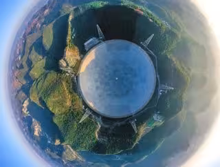 Con 500 metros de diámetro y ubicado en una depresión kárstica naturalmente profunda y redonda en la provincia de Guizhou, suroeste de China, FAST (Five-hundred-meter Aperture Spherical radio Telescope) comenzó a operar formalmente en enero de 2020. Se cree que es el radiotelescopio más sensible del mundo.