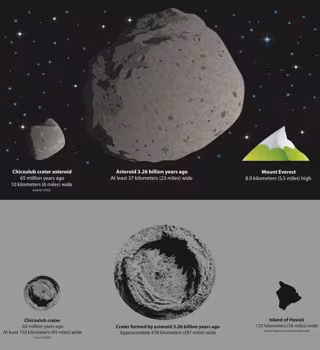 El enorme asteroide, de entre 37 y 58 kilómetros de ancho, colisionó con el planeta a 20 kilómetros por segundo. La sacudida, más grande que un terremoto de magnitud 10.8, impulsó las ondas sísmicas a través de cientos de kilómetros de la Tierra, rompiendo rocas y provocando otros grandes terremotos.