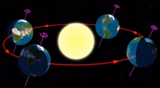 La inclinación máxima del eje de la Tierra hacia el sol es de 23°27'. Esto ocurre dos veces al año: dos momentos en los que el Sol alcanza su posición más alta en el cielo, como se ve desde el polo norte o sur.