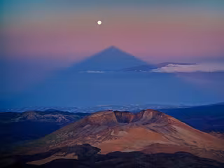 Además, la salida de la Luna coincidirá con la proyección de la sombra del Teide, mostrando una instantánea inigualable: la alargada sombra del Teide recorriendo el Parque Nacional del Teide y señalando la salida de la mayor luna llena del año.