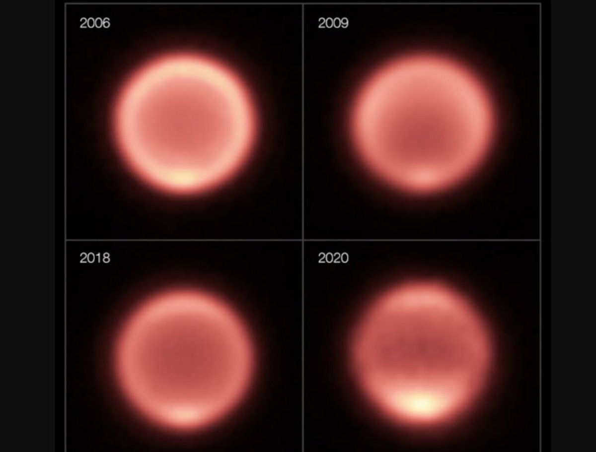 El equipo se sorprendió al descubrir en sus observaciones de los últimos dos años un impresionante calentamiento del polo sur de Neptuno: las temperaturas aumentaron rápidamente 11 ° C entre 2018 y 2020. Aunque el vórtice polar cálido de Neptuno se conoce desde hace muchos años, nunca se ha observado previamente un calentamiento polar tan rápido en el planeta.