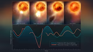 Aún más fantástico, la frecuencia de pulsación de 400 días de la supergigante ya no existe, quizás al menos temporalmente. Durante casi 200 años, los astrónomos han medido este ritmo como evidente en los cambios en las variaciones de brillo y los movimientos de la superficie de Betelgeuse. Su interrupción da fe de la ferocidad de la explosión.