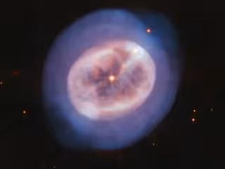 En cambio, es una gran esfera de gas en el espacio, expulsada por una estrella que envejece. En este retrato del telescopio espacial Hubble, la estrella es visible en el centro del orbe, brillando a través de los gases que anteriormente mantenía durante la mayor parte de su vida estelar.
