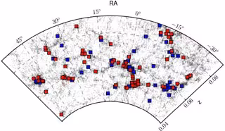 El descubrimiento se realizó utilizando datos públicos para 191.440 galaxias de una importante encuesta de desplazamiento al rojo de galaxias (el 2dFGRS) realizada hace una década con un instrumento robótico en el Telescopio Anglo-Australiano de 3,9 metros.