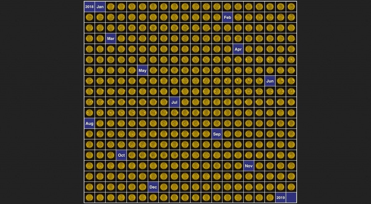 El Sol normalmente sigue un ciclo de 11 años de actividad y, durante 2018, alcanzó su mínimo solar, por lo que mostró pocas regiones activas, que aparecen más brillantes en las imágenes.