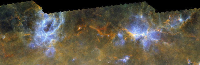 Herschel obtiene estos puntos de vista sin precedentes mirando a la Vía Láctea en luz infrarroja lejana para detectar el brillo del polvo cósmico - un componente menor pero crucial de la mezcla interestelar a partir del cual se forman las estrellas.