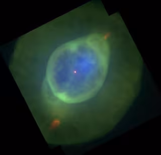 La imagen evela cómo los potentes vientos liberados por la estrella moribunda - la estrella enana blanca en el centro - están dando forma a la estructura de doble concha de la nebulosa. El resplandor azul que llena la burbuja interior representa la emisión de rayos X a partir de gas caliente, que se calienta a más de dos millones de grados por perturbaciones rápidas en los vientos estelares contra el gas ambiente.