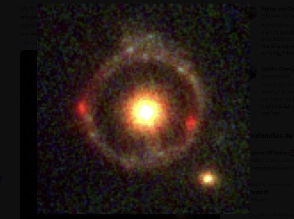 Ahora, un equipo de astrónomos dirigido por Pieter van Dokkum, de la Universidad de Yale, informa sobre el descubrimiento de una nueva galaxia de este tipo, que recibió la designación JWST-ER1. El objeto fue identificado con la cámara de infrarrojo cercano (NIRCam) de JWST como parte del estudio amplio y profundo en curso de hasta 1 millón de galaxias, conocido como COSMOS-Web. Una de las características más notables de JWST-ER1 es el llamado anillo de Einstein, un fenómeno en el que la luz aparece como un anillo debido a la lente gravitacional.