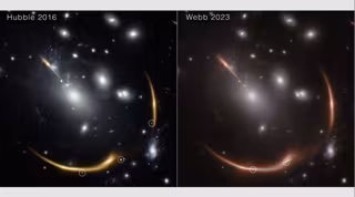 En 2019, los astrónomos anunciaron el sorprendente hallazgo de que se había producido una explosión estelar, o supernova, dentro de MRG-M0138, como se ve en las imágenes del Telescopio Espacial Hubble de la NASA tomadas en 2016. Cuando otro grupo de astrónomos examinó las imágenes Webb de 2023, quedaron asombrados al descubrir que siete años después la misma galaxia alberga una segunda supernova.
