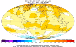 "La pregunta es, ¿el calor récord de 2016 significa algo científicamente?" dijo Christy. "1998 y 2016 son anomalías, atípicos, y en ambos casos tenemos una causa fácilmente identificable para esa anomalía: Un poderoso fenómeno de calentamiento El Niño en el Océano Pacífico. Aunque El Niño es un evento climático natural, es transitorio. En el estudio del clima, estamos más interesados en identificar con precisión las tendencias a largo plazo de la temperatura que con los picos e inmersiones a corto plazo, sobre todo cuando los picos y las inmersiones se han identificado fácilmente con las causas naturales.