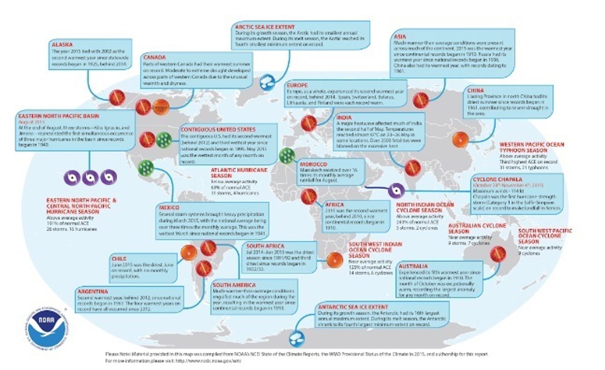 El informe anual climático de NOAA, elaborado por más de 450 científicos, ha confirmado que el 2015 superó 2014 como el año más caluroso registrado desde, al menos, mediados del S.XIX. Desde que se tienen registros. En este documento, los expertos explican que el calor récord registrado el año pasado se produjo por una combinación de calentamiento global a largo plazo y uno de los fenómenos 'El Niño' más fuertes que se conocen desde 1950.