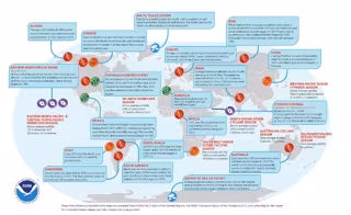 NOAA también destaca la subida del nivel del mar a un nuevo máximo histórico en 2015. Éste se mide en unos 70 milímetros más que la subida observada en 1993, cuando se inició el mantenimiento de registros por satélite para el aumento del nivel global del mar.