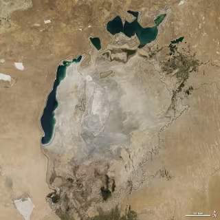 Por primera vez en la historia moderna, la cuenca oriental del Mar de Aral Sur se ha secado completamente. De más de 60.000 kilómetros cuadrados hace solo unos decenios, este mar apenas llega ahora a un 10 por ciento de esa superficie.