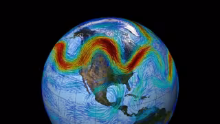El viento de gran altitud de la corriente en chorro polar modula el clima en Europa, Asia y Norteamérica. En Norteamérica, fluye aproximadamente a lo largo de la frontera de Estados Unidos con Canadá. Las grandes olas de la corriente en chorro hacen que el aire ártico penetre con mayor profundidad en las cálidas zonas subtropicales. Esto puede provocar olas de frío inusuales y fuertes tormentas invernales en zonas donde el aire cálido y el frío colisionan.