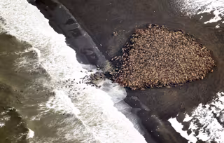 El rápido derretimiento del hielo marino en el Ártico ha obligado a unos 35.000 morsas del Pacífico a retirarse a la costa de Alaska.
