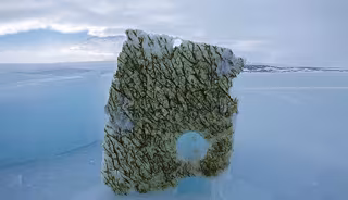 La parte inferior de un bloque recortado de hielo de 2 m de espesor cubierto de algas heladas, colocado sobre el hielo marino del estrecho de McMurdo, en la Antártida. - LARS CHRESTEN LUND-HANSEN.