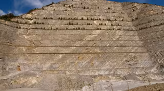 Una cantera que ilustra bandas de piedra caliza estratificada del antiguo fondo marino en lo que ahora es Mercato San Severino en Italia. - F. TISSOT