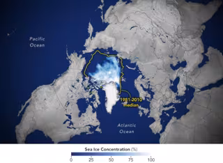 Entre marzo y septiembre de 2023, la capa de hielo en el Ártico se redujo de un área máxima de 14,62 millones de kilómetros cuadrado a 4,23 millones de kilómetros cuadrados). Eso es aproximadamente 1,99 millones de kilómetros cuadrados por debajo del mínimo promedio de 1981-2010 de 6,22 millones de kilómetros cuadrados. La cantidad de hielo marino perdida fue suficiente para cubrir todo el territorio continental de Estados Unidos.