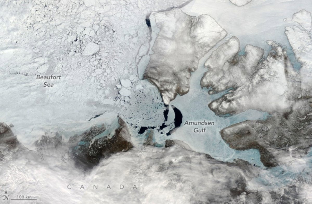 En todo el océano Ártico, el hielo marino comenzó su ciclo anual de derretimiento y ruptura a finales de marzo de 2025. Sin embargo, el momento y la velocidad de su retroceso pueden variar según la región. Los investigadores han demostrado que la congelación en la cima del golfo de Amundsen se produce rápidamente durante el invierno. En cambio, la ruptura en primavera puede tardar entre dos y 22 semanas, según el NASA Earth Observatory.