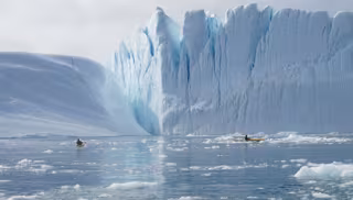 Los científicos utilizan kayaks para remolcar sensores alrededor del hielo en la boca del fiordo helado de Ilulissat en Groenlandia. - MARK HOPWOOD