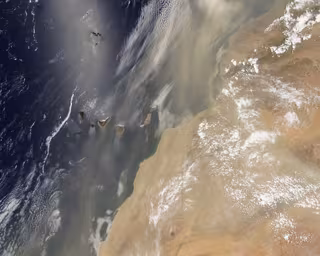 La imagen --captada el pasado 19 de julio-- fue tomada por uno los instrumentos del satélite 'Aqua', el Espectrómetro de Imágenes de Resolución Moderada (MODIS), y muestra al archipiélago y a gran parte del océano cubiertos por un velo de polvo de color canela.