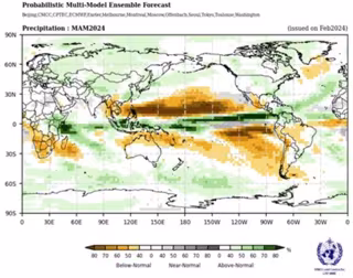 Según una actualización de la Organización Meteorológica Mundial (OMM) hay alrededor de un 60% de posibilidades de que El Niño persista durante marzo-mayo y un 80% de posibilidades de que se produzcan condiciones neutrales (ni El Niño ni La Niña) de abril a junio. Existe la posibilidad de que se desarrolle La Niña más adelante en el año, pero las probabilidades son actualmente inciertas.