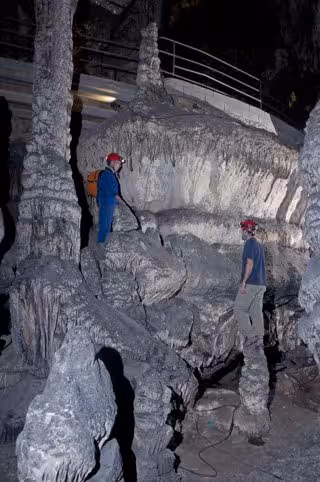 Investigadores estudian los niveles de sobrecrecimiento freático en espeleotemas en la Cueva de Artá, en Mallorca - A. MERINO - Archivo