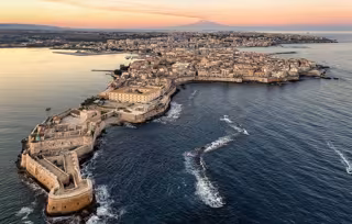 Vista general de Siracusa con el volcán Etna al fondo - WIKIMEDIA