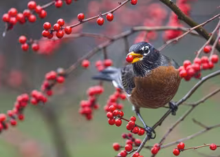 Archivo - Un petirrojo americano come una baya de invierno. Las aves pequeñas como los petirrojos suelen dispersar semillas en distancias relativamente cortas. - PAUL VITUCCI - Archivo