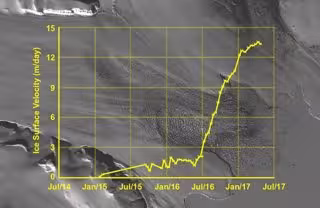 Se trata del fenómeno conocido como 'surge', en el que una gran cantidad de hielo se desplaza súbitamente y en muy poco tiempo hasta sus límites. Aunque aún no se comprenden exactamente las causas, se cree que podrían deberse a cambios en la cantidad de calor o agua en las capas inferiores de los glaciares.