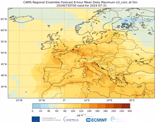 Con el reciente aumento de las temperaturas y las olas de calor, se ha pronosticado un nuevo episodio de altas concentraciones de ozono en la superficie y de superación de los valores límite establecidos por la legislación europea sobre calidad del aire en varias zonas de Europa occidental y meridional entre el 29 de julio y el 4 de agosto.