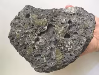 El basalto, la roca más común en la superficie de la Tierra, encierra cristales verdes, un fenómeno geológico de "muñeco de anidación" llamado xenolito. - CARNEGIE