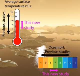 Los autores realizaron simulaciones para muchos escenarios posibles para el tamaño de los continentes, la sensibilidad a la temperatura de la intemperie química y otros factores para obtener toda la gama de escenarios posibles para la temperatura media del aire y el pH del océano a lo largo de la historia.