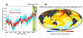 Él describe los acontecimientos que condujeron a este repunte de la siguiente manera: las temperaturas de la superficie del mar comenzaron a subir inusualmente rápido en el Pacífico Norte extratropical ya en enero de 2014. Unos meses más tarde, en abril y mayo, los vientos del oeste empujaron una gran cantidad de agua muy cálida que normalmente se almacena en el Pacífico occidental a lo largo de la línea ecuatorial al este del Pacífico.
