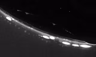 Imagen de microscopía de fluorescencia de protoceldas en contacto con una burbuja de gas. - LMU/ ALAN IANESELLI