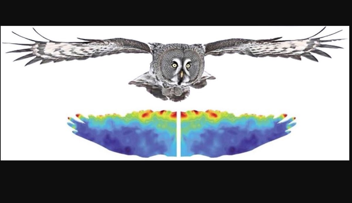 Mapa de calor que representa distribuciones de fluctuaciones de presión en la superficie del ala del búho - HAO LIU/CHIBA UNIVERSITY