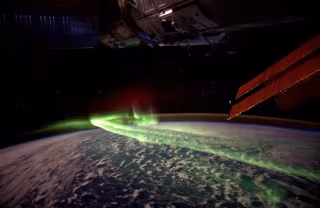 La energía y las partículas del sol interactúan con los gases de la atmósfera para crear asombrosos espectáculos de luces llamados auroras, como esta instancia de las Luces del Sur vistas desde la Estación Espacial Internacional en 2012. - ESA/NASACC BY-SA IGO 3.0