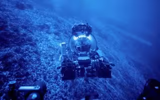 El científico jefe Frieder Klein y el piloto del Deep Rover Alan Scot exploran una plataforma de carbonato sumergida. - NOVUS SELECT