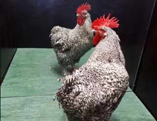 Para el siguiente paso, se colocó un espejo entre las secciones en lugar de una valla. ¿Cómo reaccionan los gallos ante la combinación de su propia imagen en el espejo y un ave de presa? La prueba se realizó nuevamente tres veces con cada animal. De 174 pruebas, sólo se emitieron 25 alarmas. "Esto demuestra que los gallos no ven su imagen reflejada como la de otro", afirma Sonja Hillemacher. El resultado ofrece una indicación de que podrían haberse reconocido a sí mismos en su imagen especular. Sin embargo, teóricamente también existe la posibilidad de que sólo reconocieran un animal extraño que imitaba su propio comportamiento y, por este motivo, prefirieran no advertirles. "Aquí se necesita más experimentación", explica Inga Tiemann. Para fines de comparación, el equipo también llevó a cabo una prueba de puntuación tradicional, en la que los gallos no demostraron ningún comportamiento que sugiriera que se reconocieran en el espejo.
