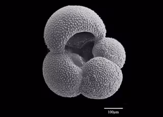 Las huellas químicas de los niveles de CO2 pasados ??se conservan en conchas fósiles microscópicas como este foraminífero. - UNIVERSIDAD DE ST. ANDREWS