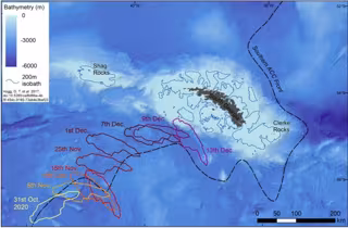 "Sin embargo, aunque estamos interesados en los efectos de la nueva llegada de la A-68a a Georgia del Sur, no todos los impactos a lo largo de su trayectoria son negativos. Por ejemplo, cuando viajan a través del océano abierto, los icebergs arrojan enormes cantidades de polvo mineral que fertilizarán el plancton oceánico que los rodea, y esto los beneficiará y ascenderá en cascada en la cadena alimentaria".