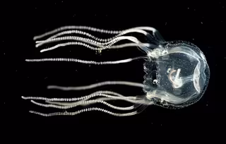 Estas aparentemente sencillas medusas, del tamaño de una uña, poseen un complejo sistema visual con 24 ojos incrustados en su cuerpo acampanado. Viven en manglares y utilizan su visión para navegar por aguas turbias y sortear las raíces de los árboles para atrapar a sus presas.