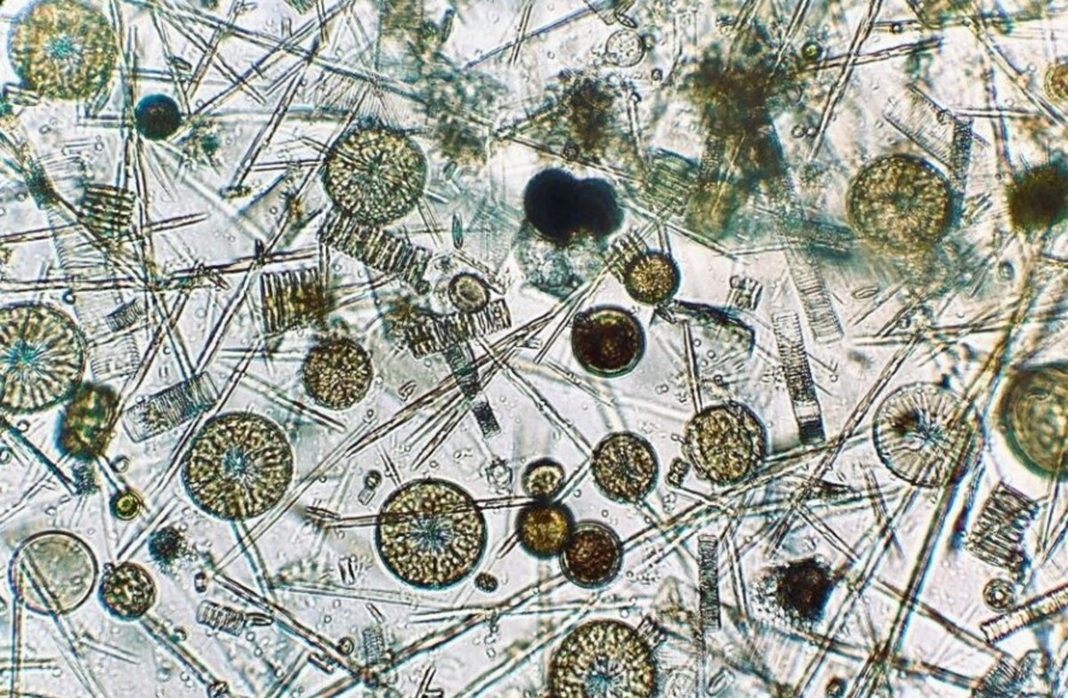 El fitoplancton, similar a las plantas, absorbe dióxido de carbono mediante la fotosíntesis. Las diatomeas, con densos esqueletos de silicio, se hunden rápidamente y arrastran carbono a las profundidades oceánicas. Las haptofitas y criptofitas no secuestran carbono en la misma medida.