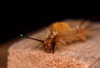 Oruga de la polilla vaporizadora medida con el vibrómetro láser Doppler. - SAM ENGLAND
